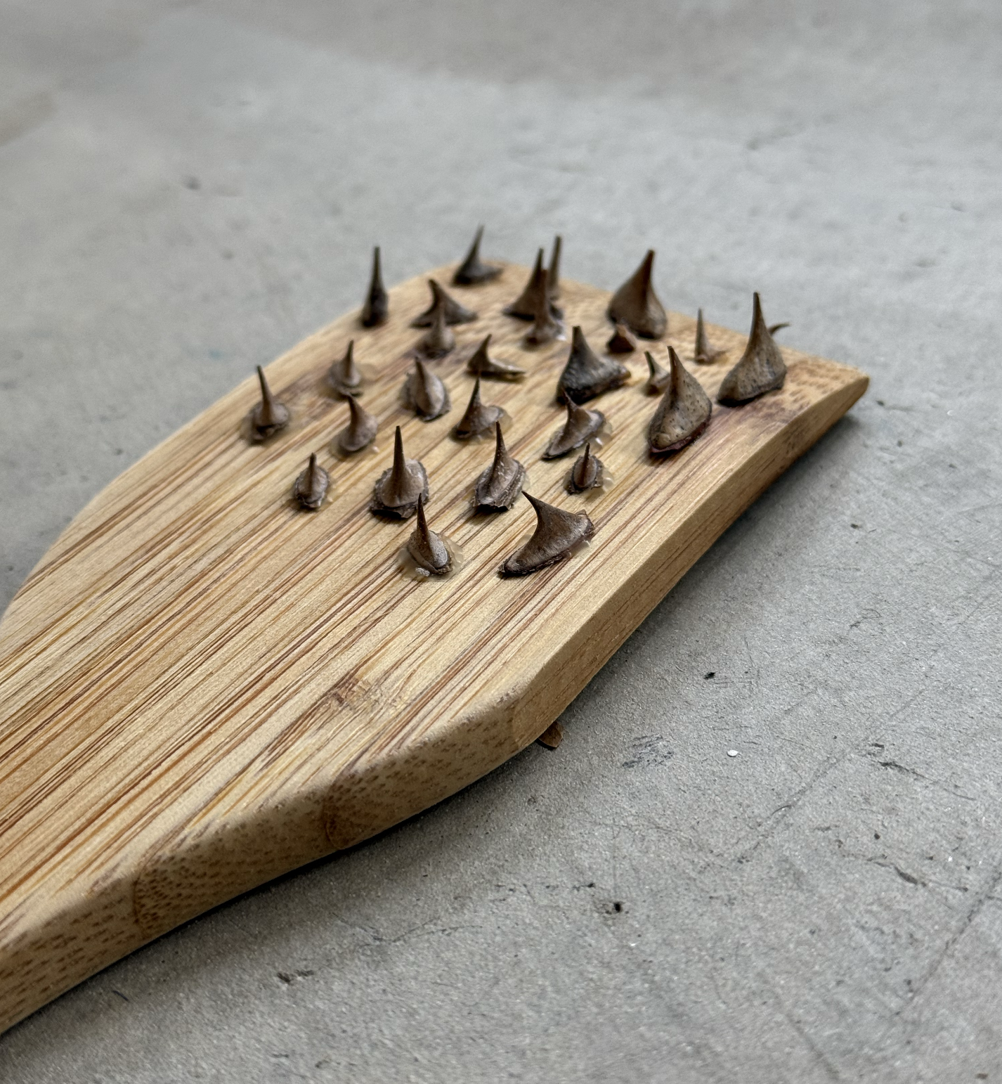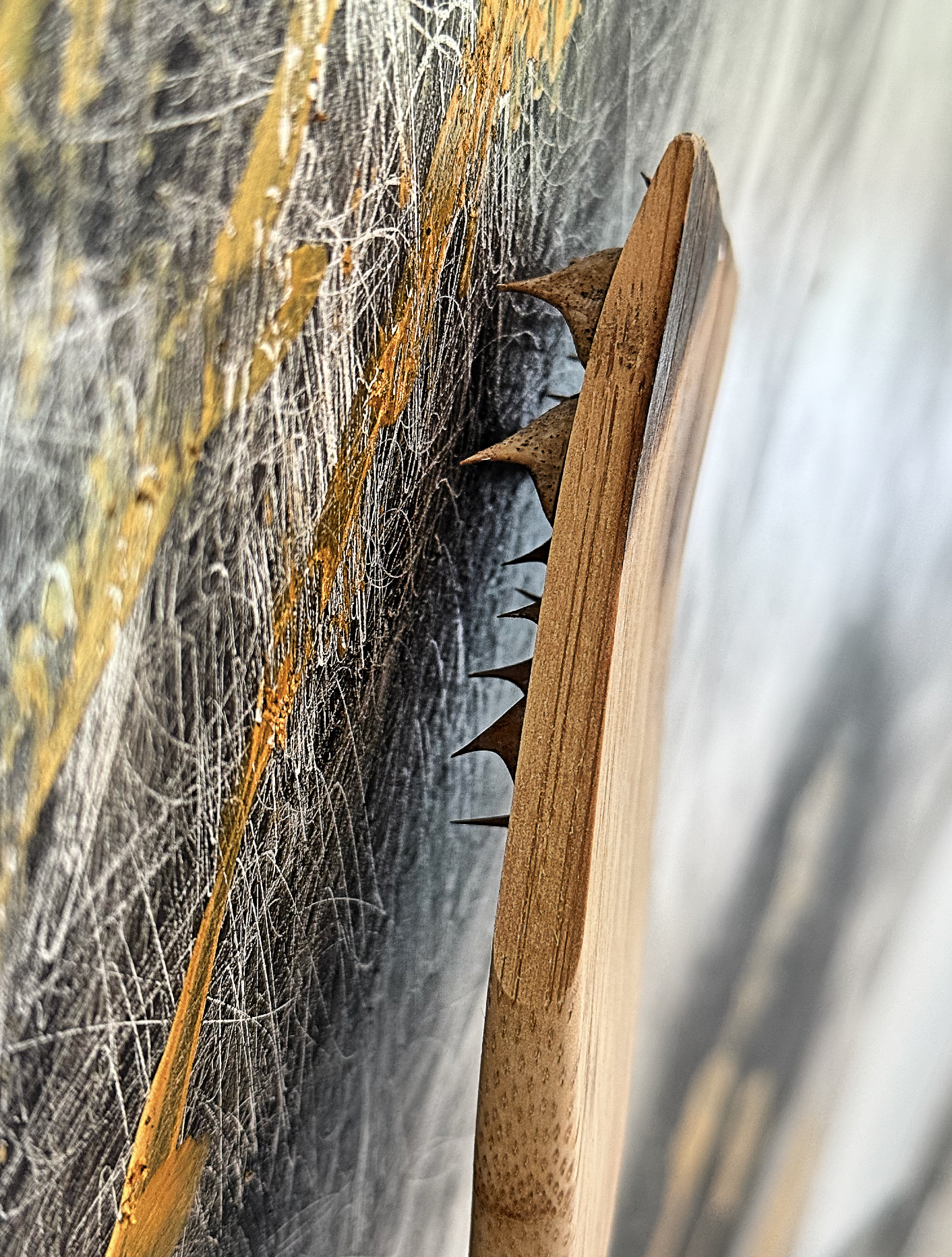 To bring it to life, I created a unique tool: a handcrafted “brush” made of real thorns as bristles.